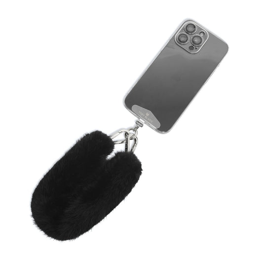 TOBY BLACK 25918 Black Fur Bag Strap/Wrist Strap with Phone